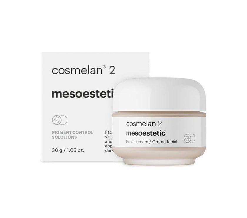Θεραπεία κατ’ οίκον που συμπληρώνει το cosmelan 1 η οποία μειώνει διαρκώς τις κηλίδες και ρυθμίζει την υπερπαραγωγή μελανίνης για να αποτρέψει την επανεμφάνισή τους.